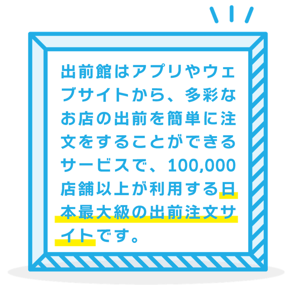 国内最大級のお店専用のデリバリーサイトの『出前館』。安心・安全・安定の配達サービスで、天候等に左右されにくい安定的な集客や売り上げアップが期待できます!