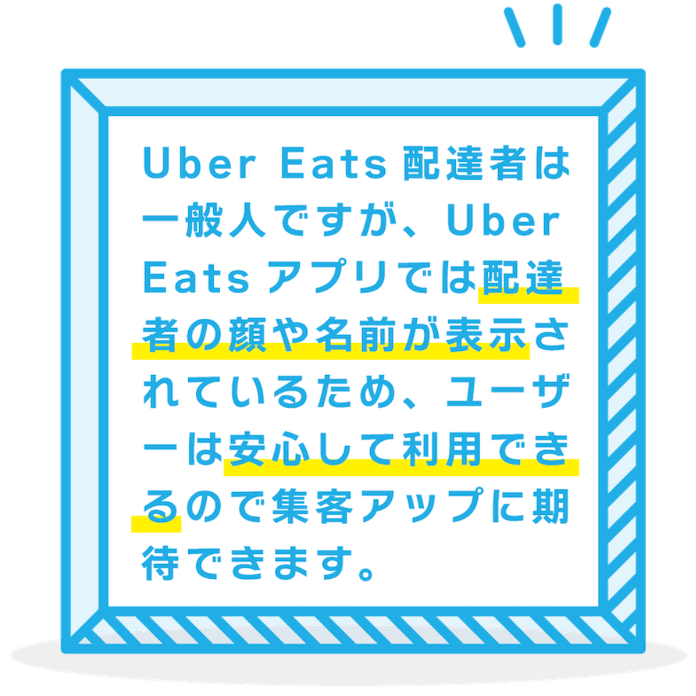 料理をデリバリーしたい店舗さま、それを注文したいユーザーと配達でお金を稼ぎたい人、それぞれにメリットのある仕組みの『Uber Eats』は認知度が高いので集客が期待できます。